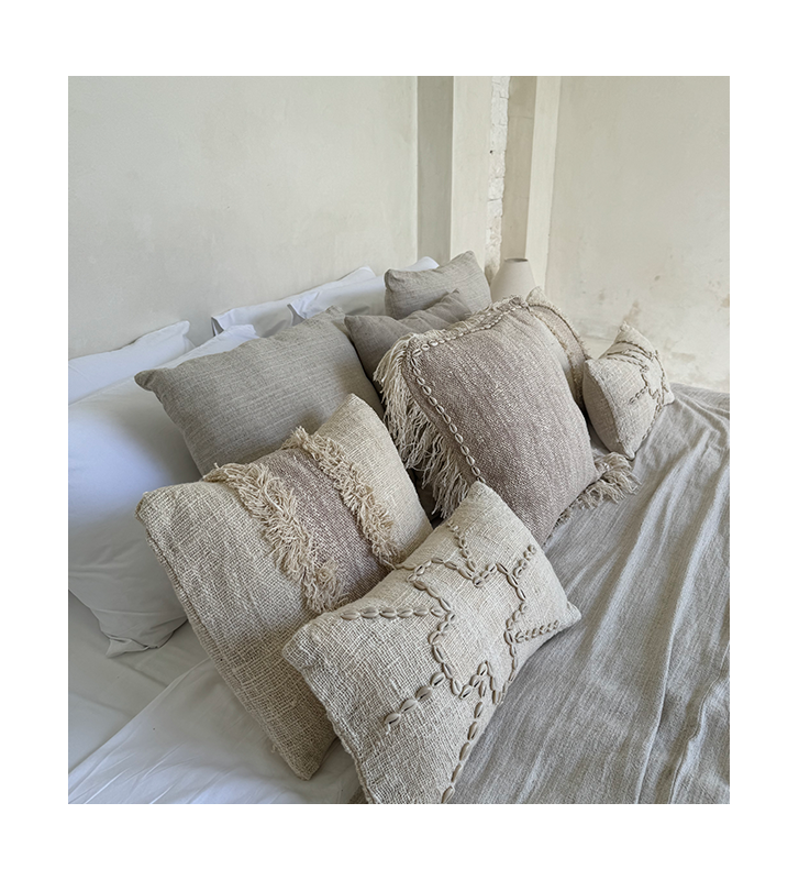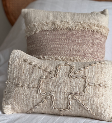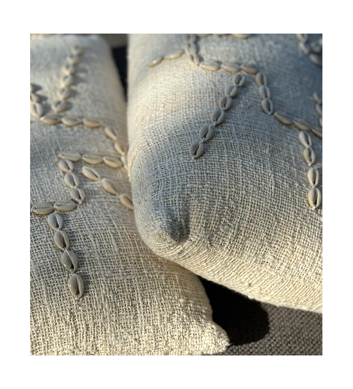 Housse de coussin écru avec coquillages