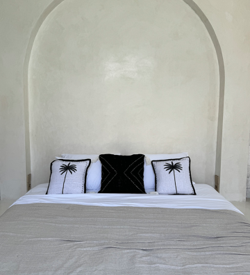 Housse de coussin écru avec palmier noir brodé