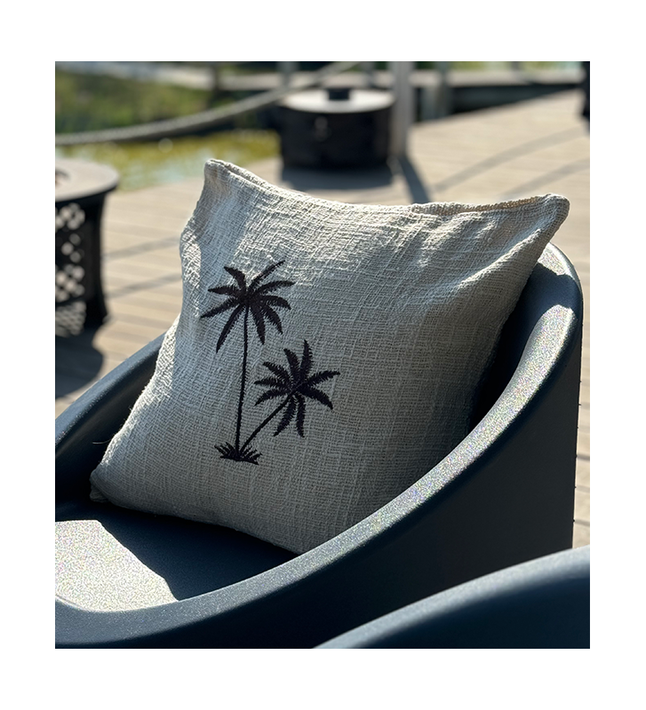 Add to wishlist Add to compare Aperçu rapide Ajouter au panier Housse de coussin Canggu Prix 49,00 € Availability: 5 In Stock Housse de coussin écru avec palmier noir brodé Taille 45x45 cm 100% coton Fait main par des artisans balinais