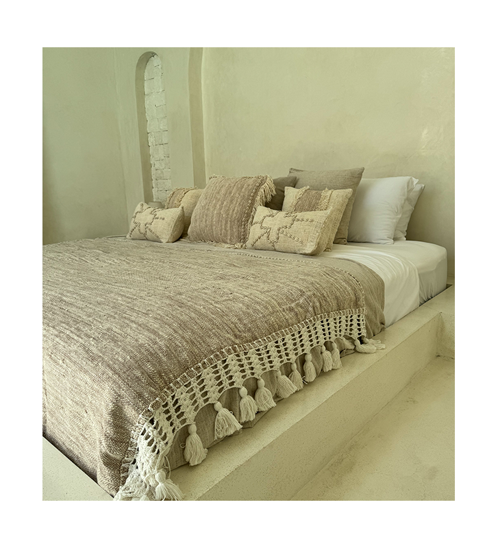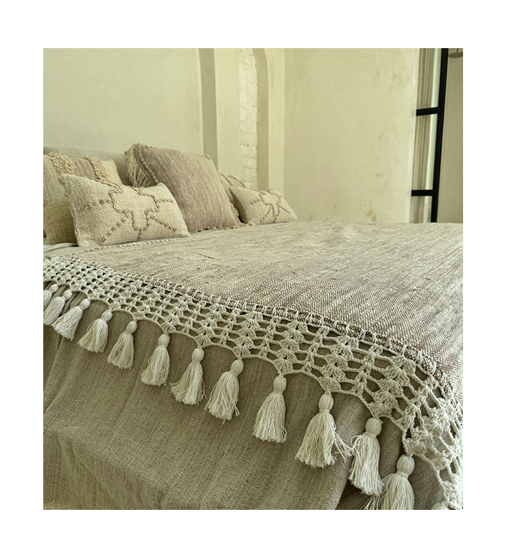 Plaid beige avec pompons blancs
